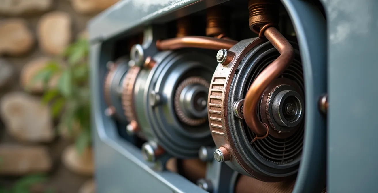 L’acquisition d’une pompe à chaleur (PAC) représente un investissement conséquent pour tout propriétaire soucieux de son confort et de sa facture énergétique. Naturellement, la question de l’amortissement et de la longévité de cet équipement devient centrale. On pense souvent que la clé réside dans un entretien annuel rigoureux et un nettoyage régulier de l’unité extérieure. Si ces gestes sont indispensables, ils ne sont que la partie visible de l’iceberg. La plupart des pannes graves et des fins de vie prématurées trouvent leur origine dans des phénomènes plus insidieux, liés au cœur même du système : le compresseur.